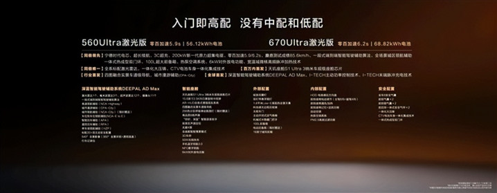 新车提供56.12kWh和68.82kWh两种容量的磷酸铁锂电池组,对应续航里程为560公里和670公里,支持6kW的V2L外放电功能。